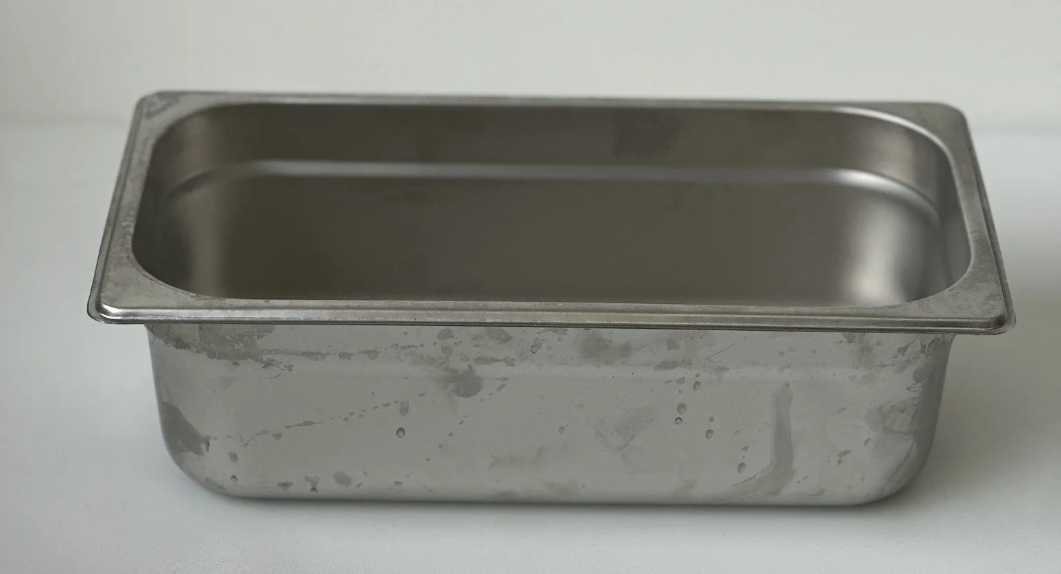 Stainless steel steam table pans. The size is for a 1/6th of a pan 4 inches deep
